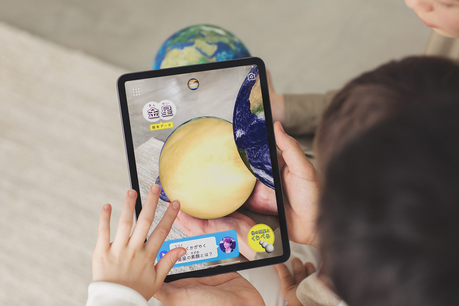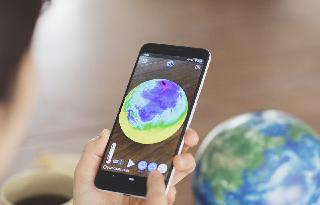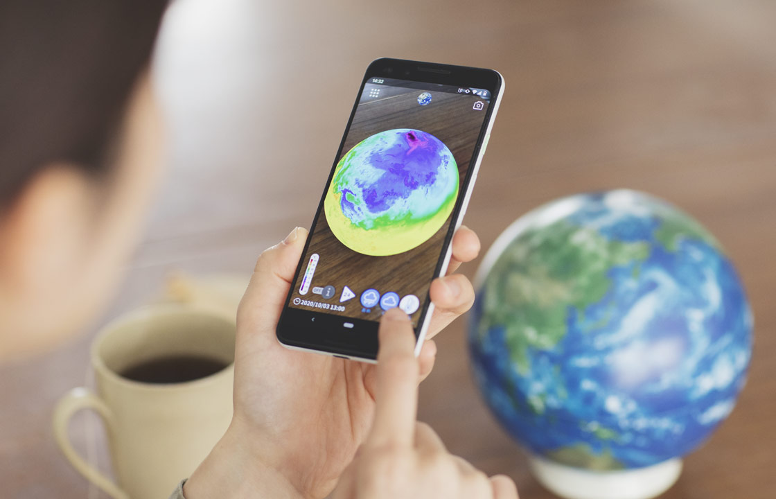 スマホをアースボールにかざすと、